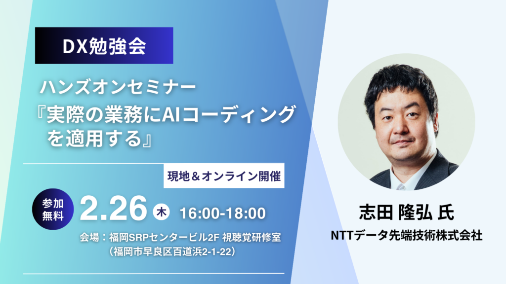 | イベント名 | DX勉強会「実際の業務にAIコーディングを適用する」 |