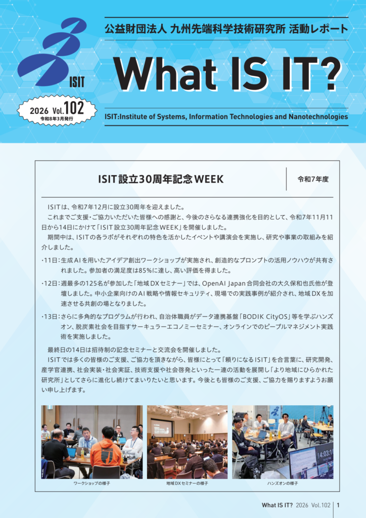 本研究所の「賛助会員」に入会いただくとISITが発行する「What IS IT?」や 活動報告書等の刊行物をお届けします。 What IS IT? 最新号 2026 Vol.102 ISIT設立30周年記念WEEK PD […]