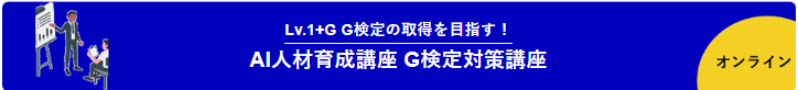 日本ディープラーニング協会が実施するG検定(AIジェネラリスト検定)合格を目指す講座です。ディープラーニング(深層学習)の基礎知識を有し、適切な活用方針を決定して、事業活用する能力や知識を学びます。